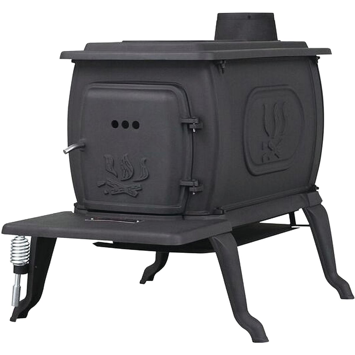 Http://www.blujay.com/?page=ad&ad Cast iron boxwood stove burns wood safely and efficiently to heat workshops, cabins, garages or hunting camps. Comfortably heats an area up to 600 sq. ft., delivering 63,801 BTU for up to 4 hours. Fully assembled except for legs and damper collar ... View Video